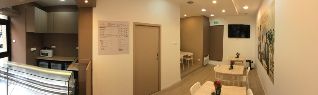 • Création d’un espace cuisine ouvert, optimisé pour la préparation et la vente à emporter.