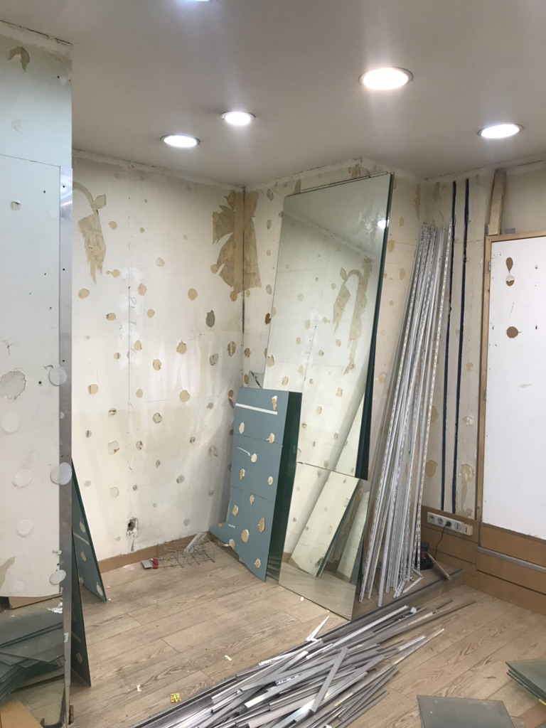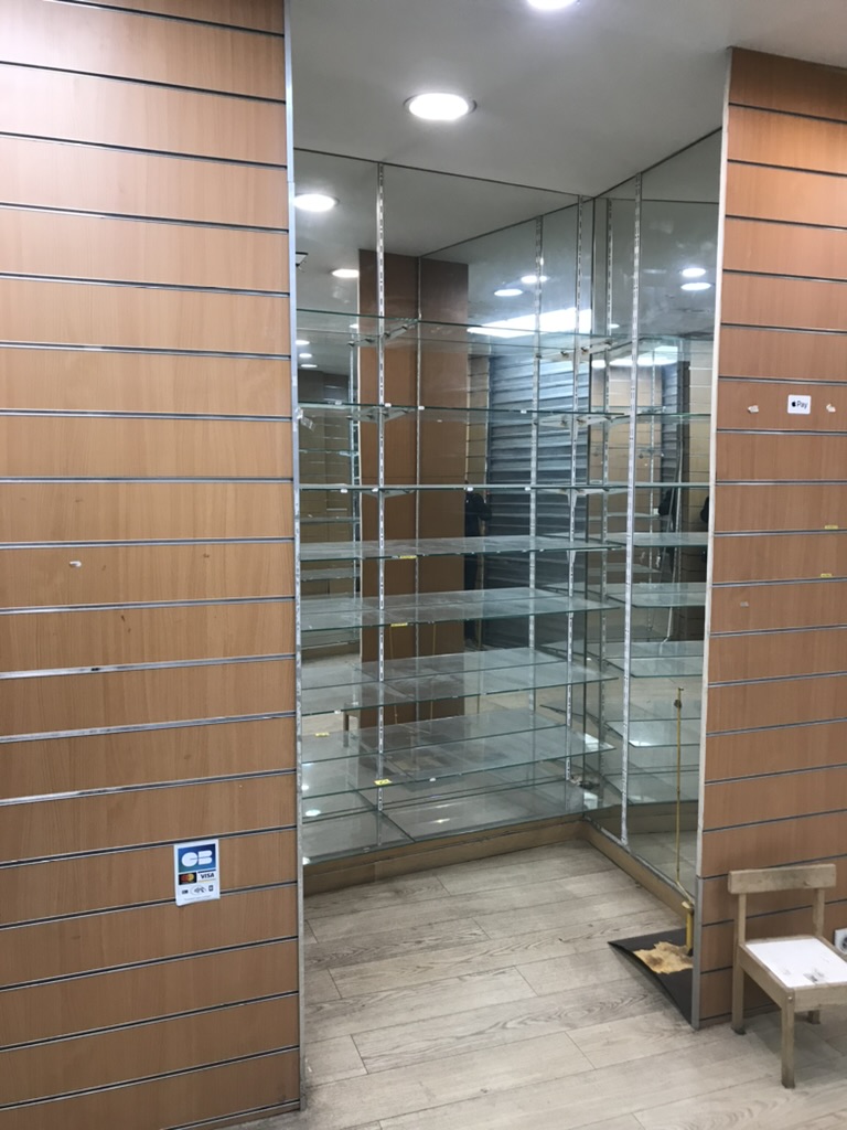 • Dépose complète des aménagements intérieurs de l’ancienne boutique (étagères, vitrines, faux plafonds, revêtements muraux et sols).
