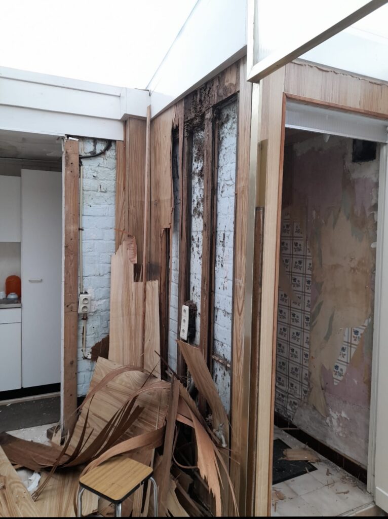 Démolition et évacuation des anciens éléments vétustes pour repartir sur une base saine.